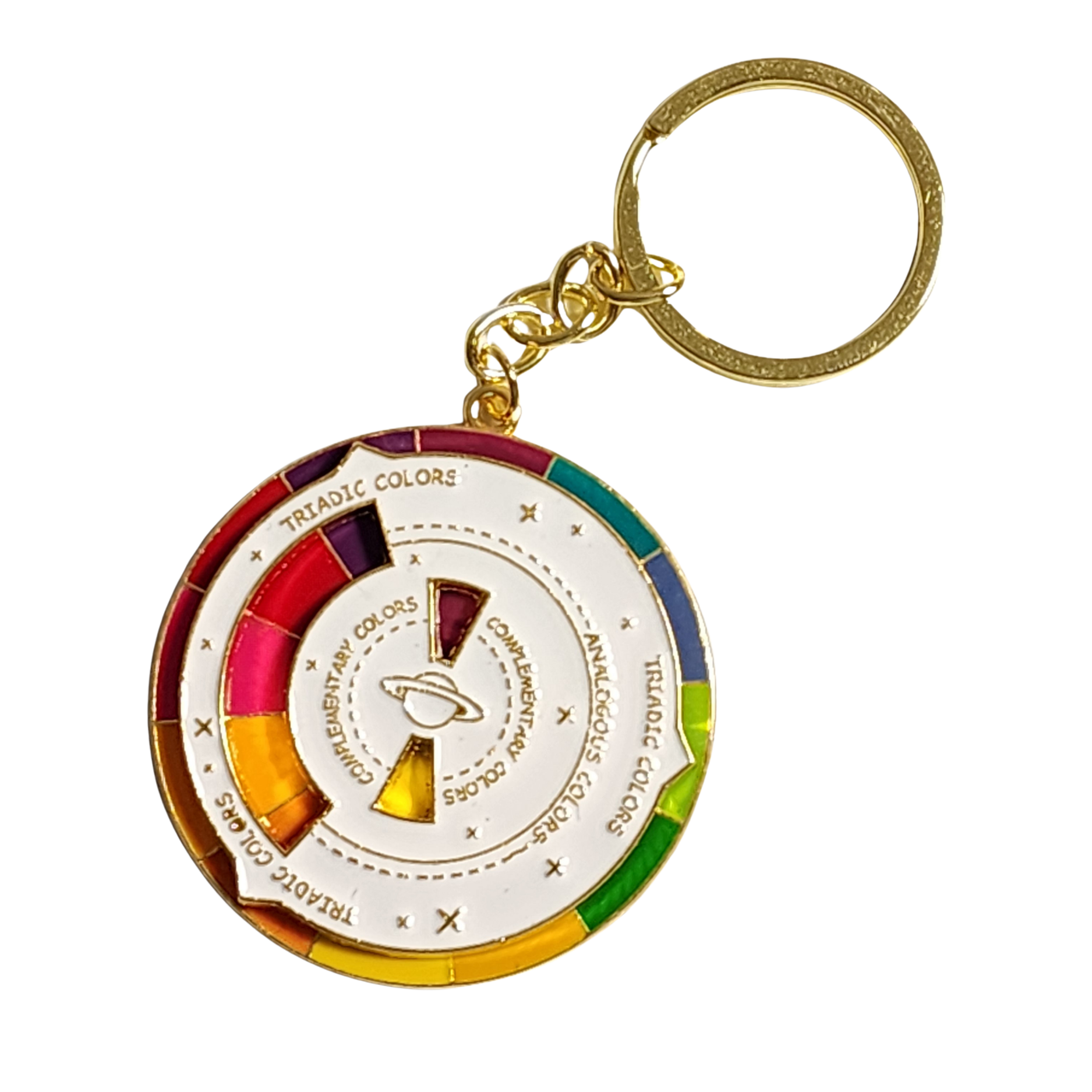 Bring color theory with you wherever you go! Our metal Spinning Color Wheel Keychain is both cute and incredibly useful for cardmaking, mixed media, journaling, illustration, and creative play. The top plate spins to reveal real color relationships including: