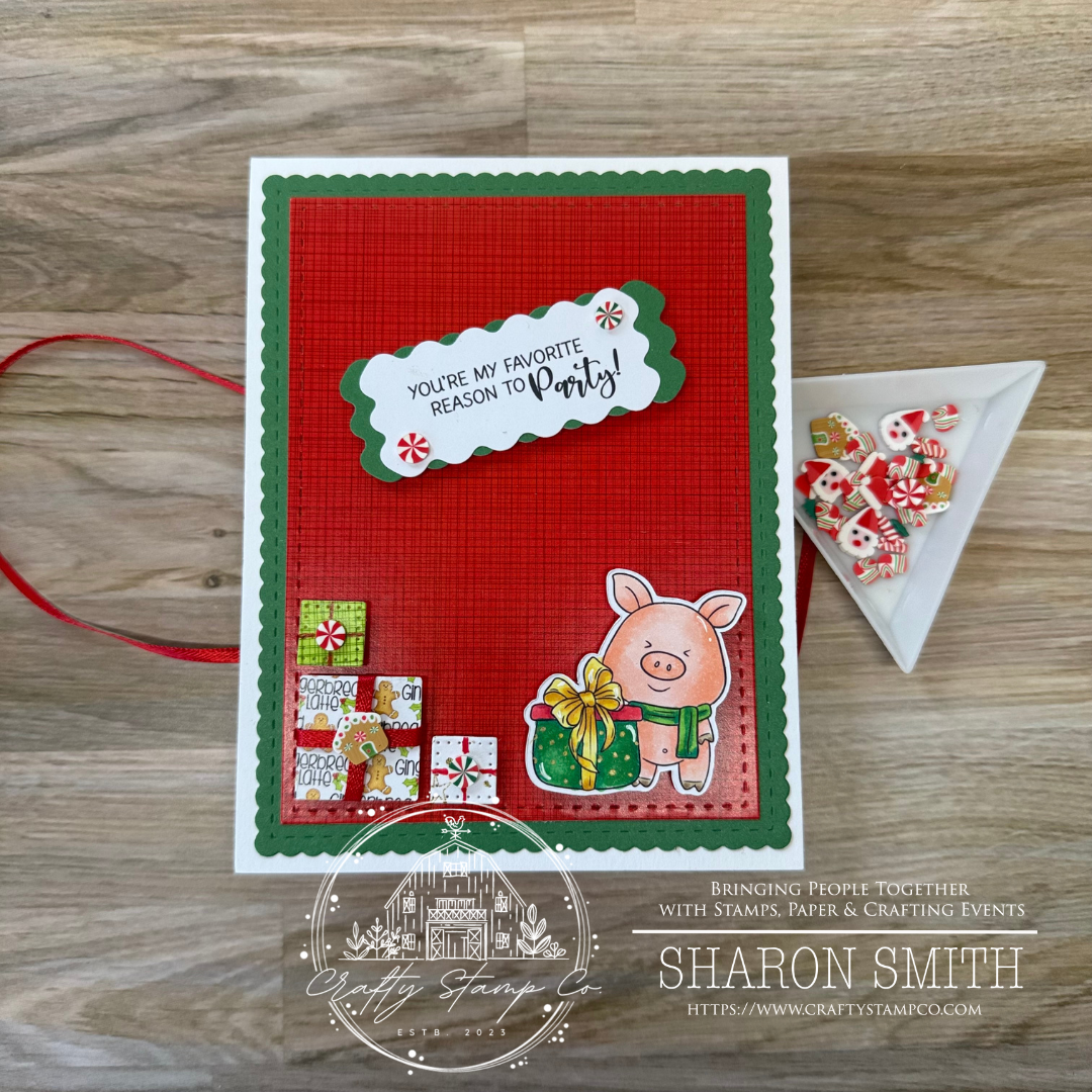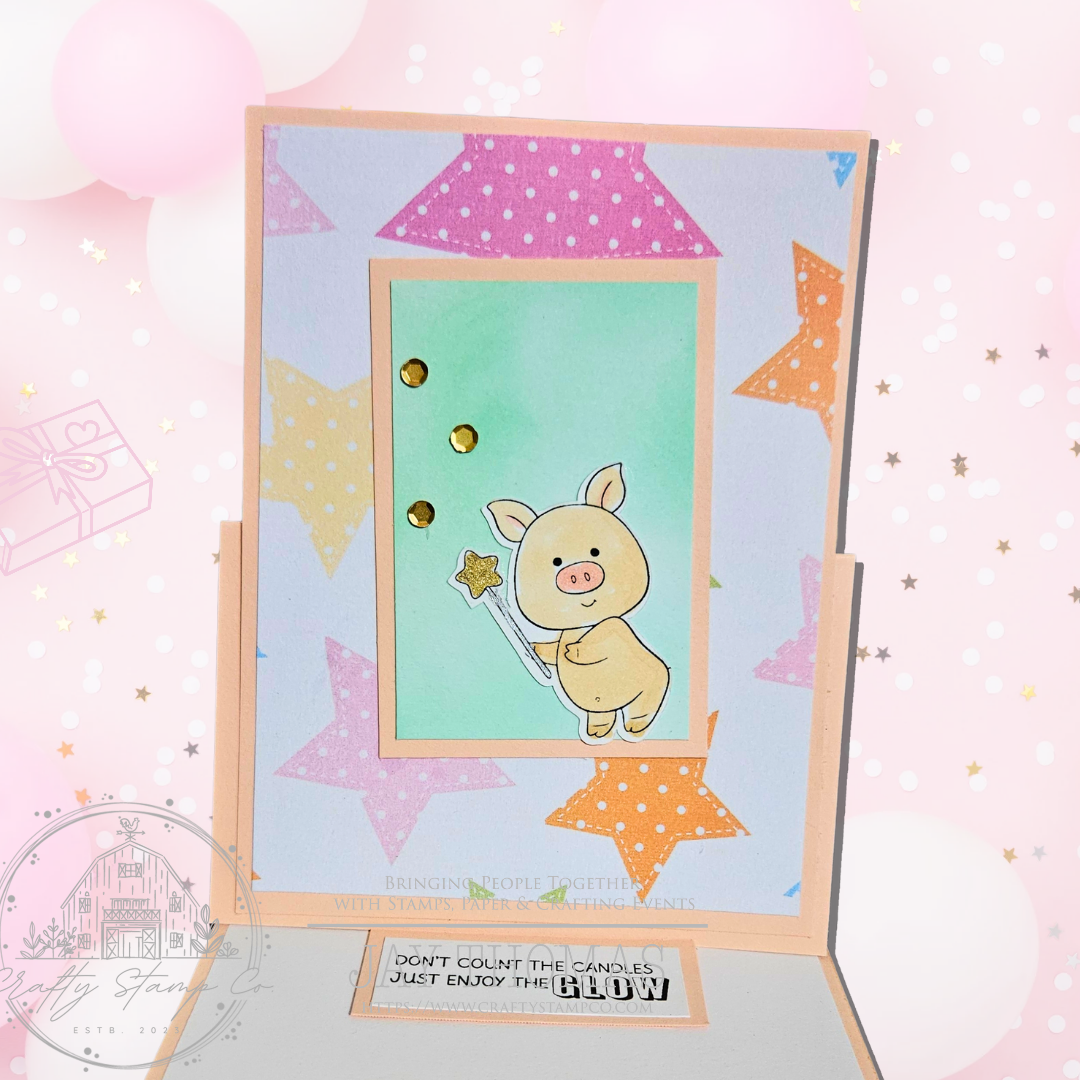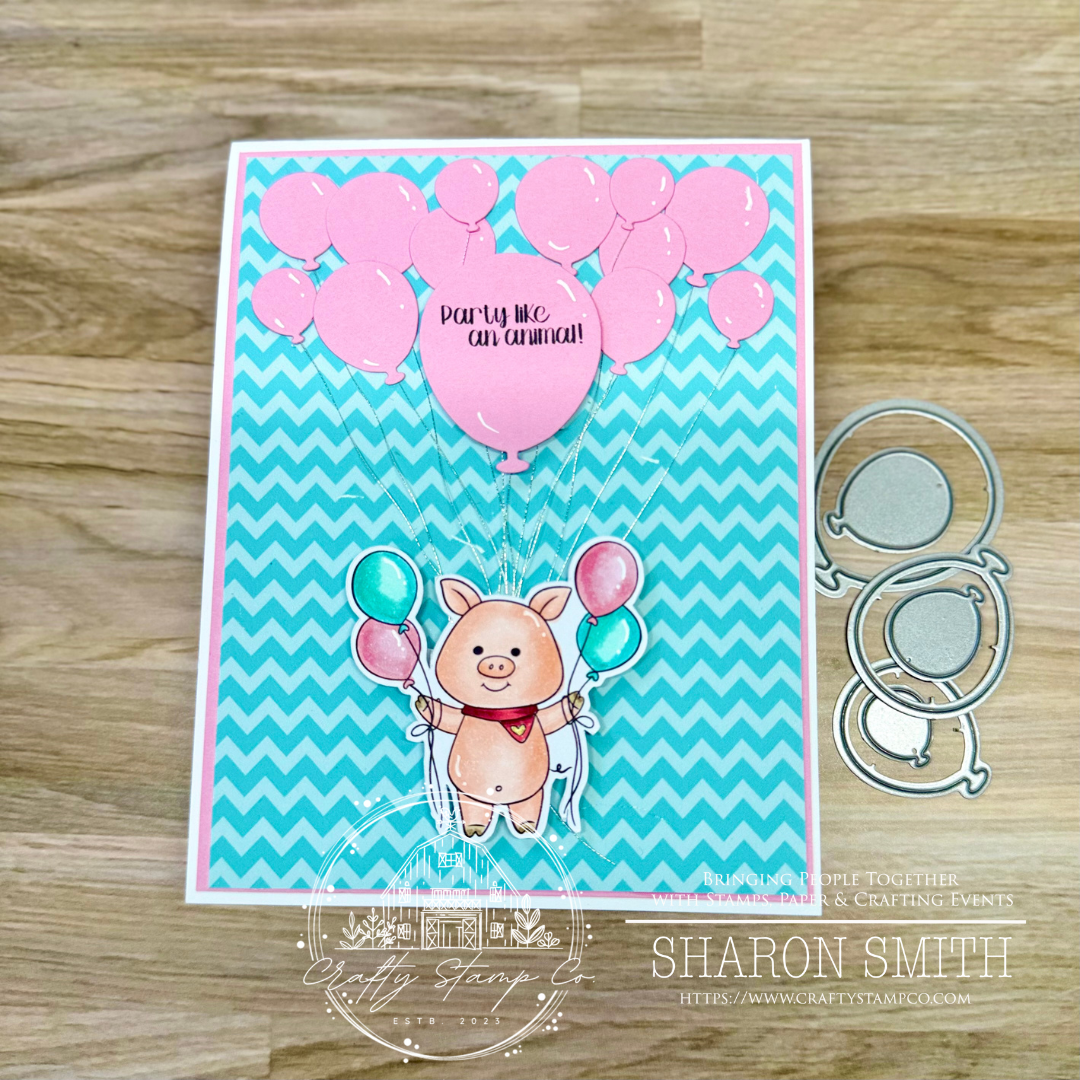 DESCRIPTION: (4) party piggies images, (1) cake image, (1) bow image, (3) sentiments