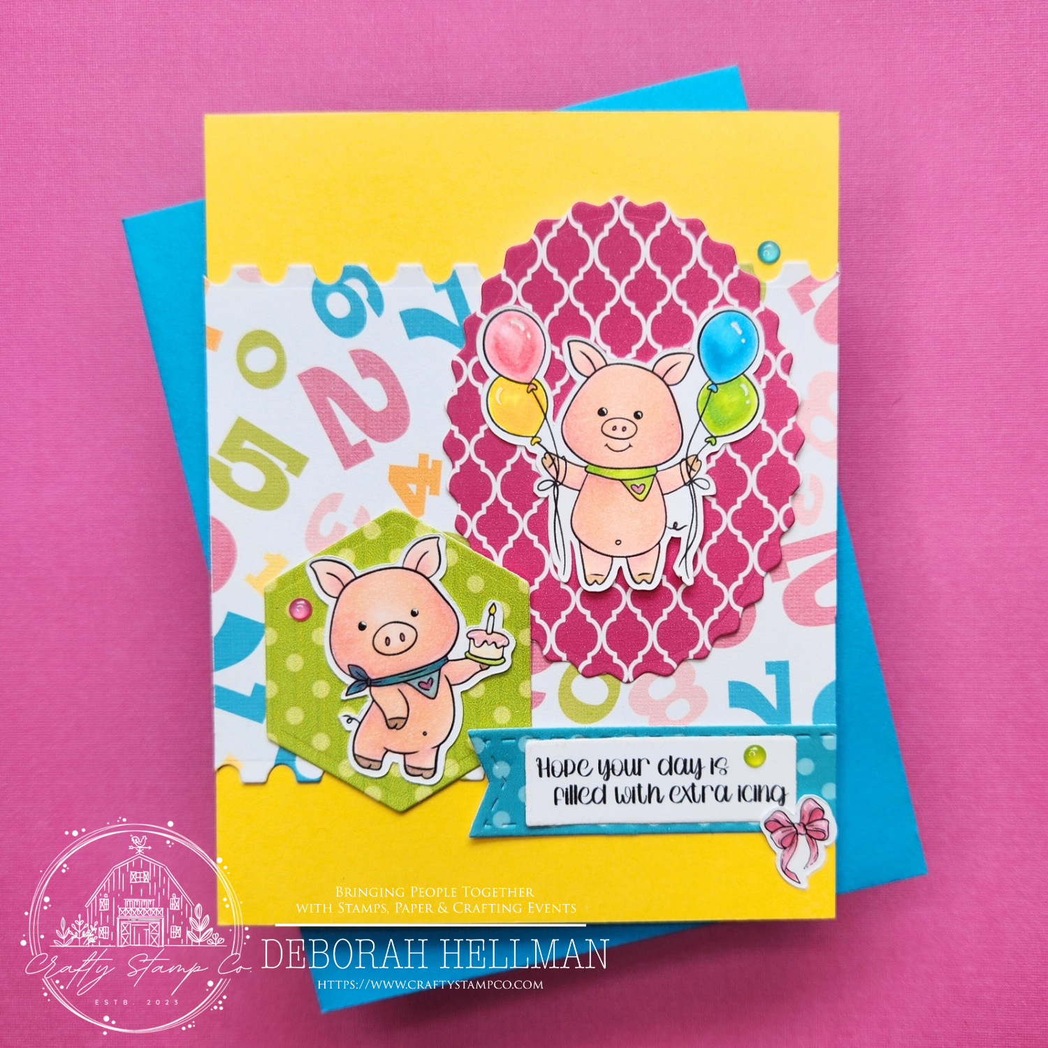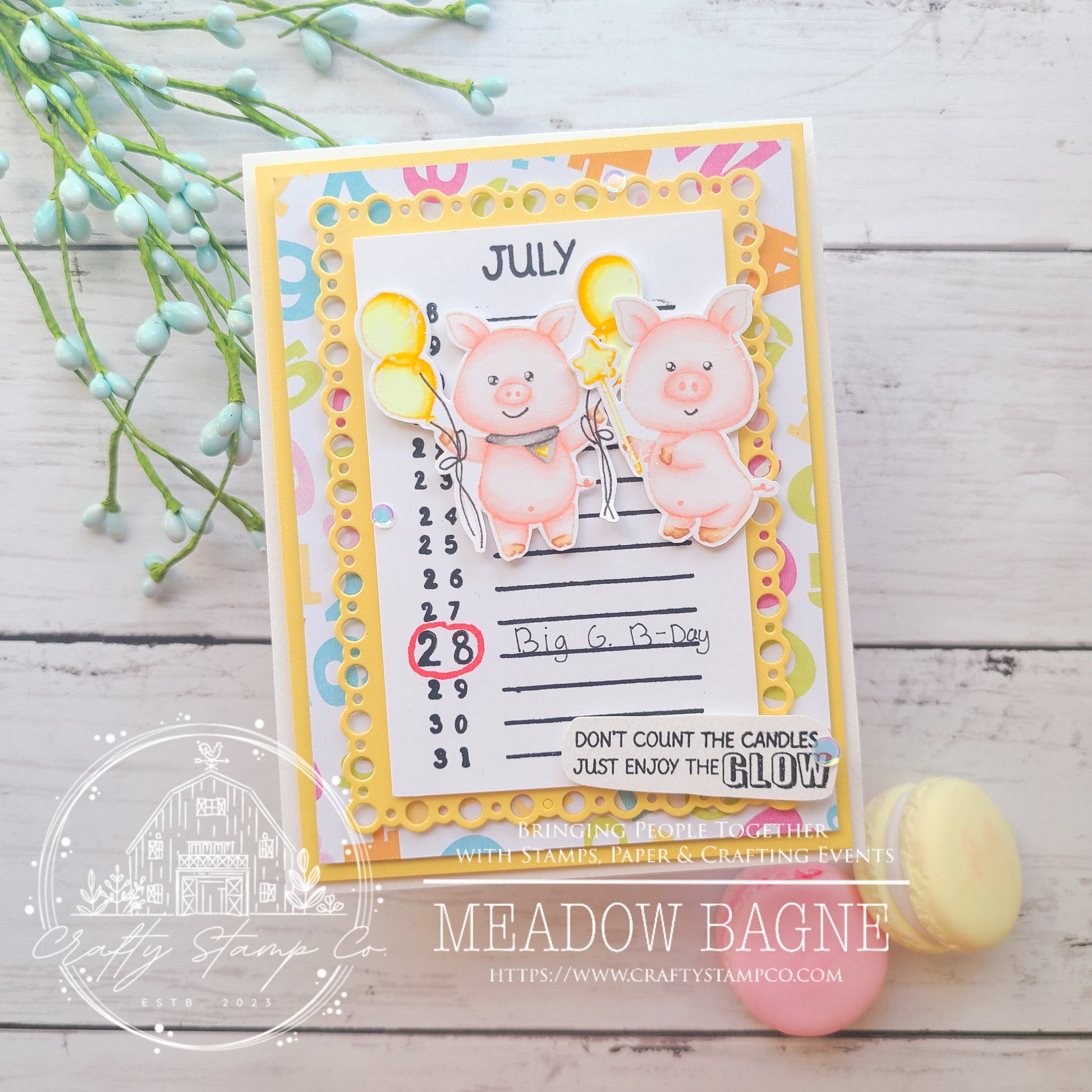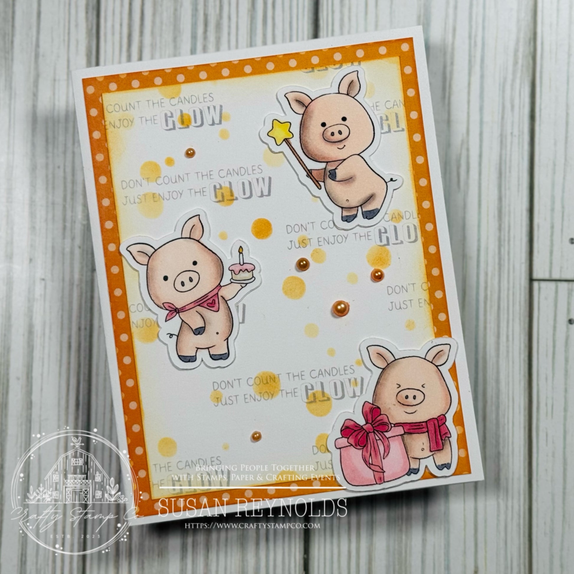 DESCRIPTION: (4) party piggies images, (1) cake image, (1) bow image, (3) sentiments